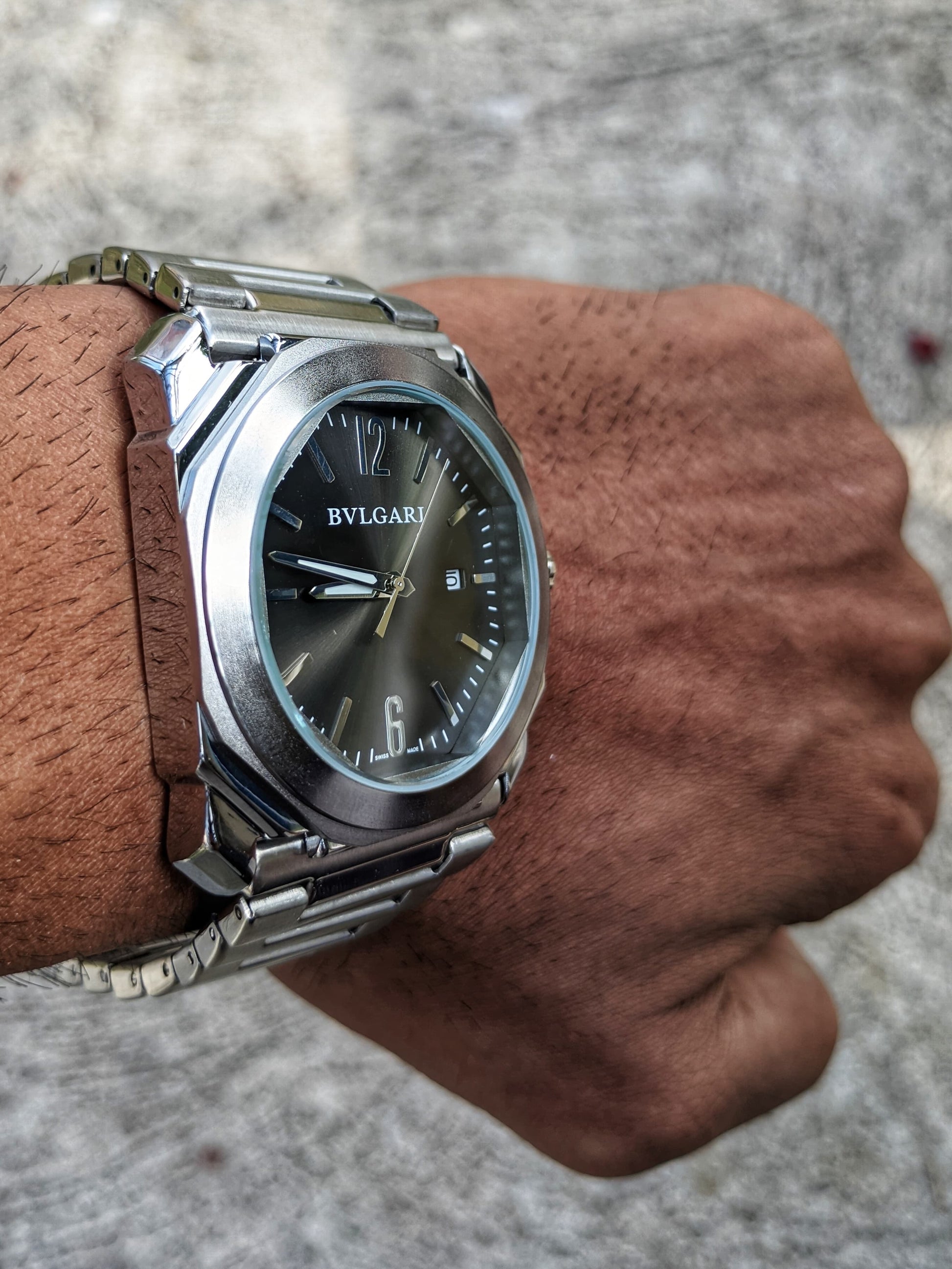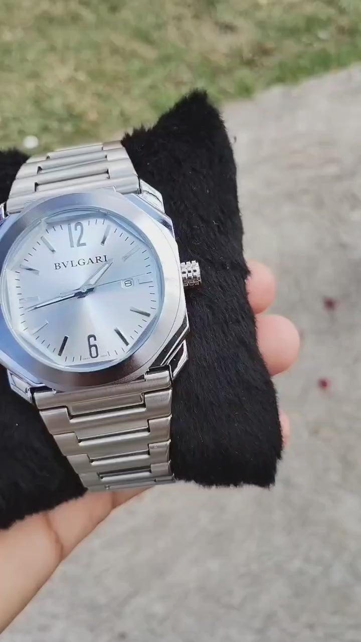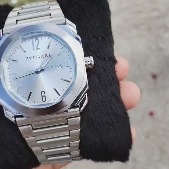 O Octo Supreme é a definição perfeita de elegância moderna com imponência metálica. Seu acabamento em aço escovado prata, combinado ao design octogonal exclusivo da linha Bvlgari, transmite uma sensação imediata de status e poder. 👑