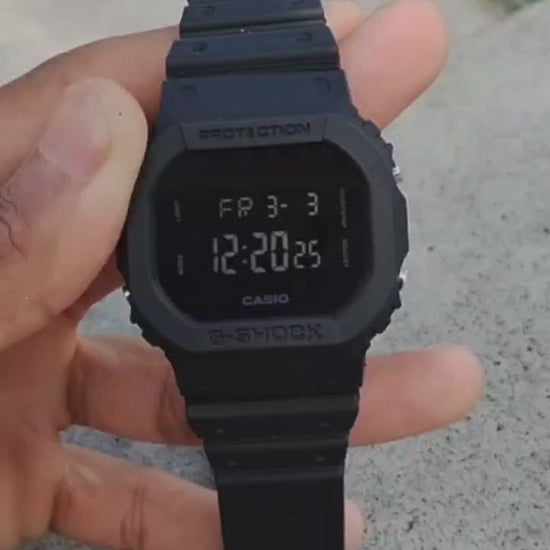 O G-Shock DW-5600BB é mais do que um relógio — é um símbolo de autoridade silenciosa. Com design totalmente preto fosco (stealth), ele transmite força, discrição e sofisticação, tudo em um formato quadrado clássico que resiste ao tempo e às tendências.