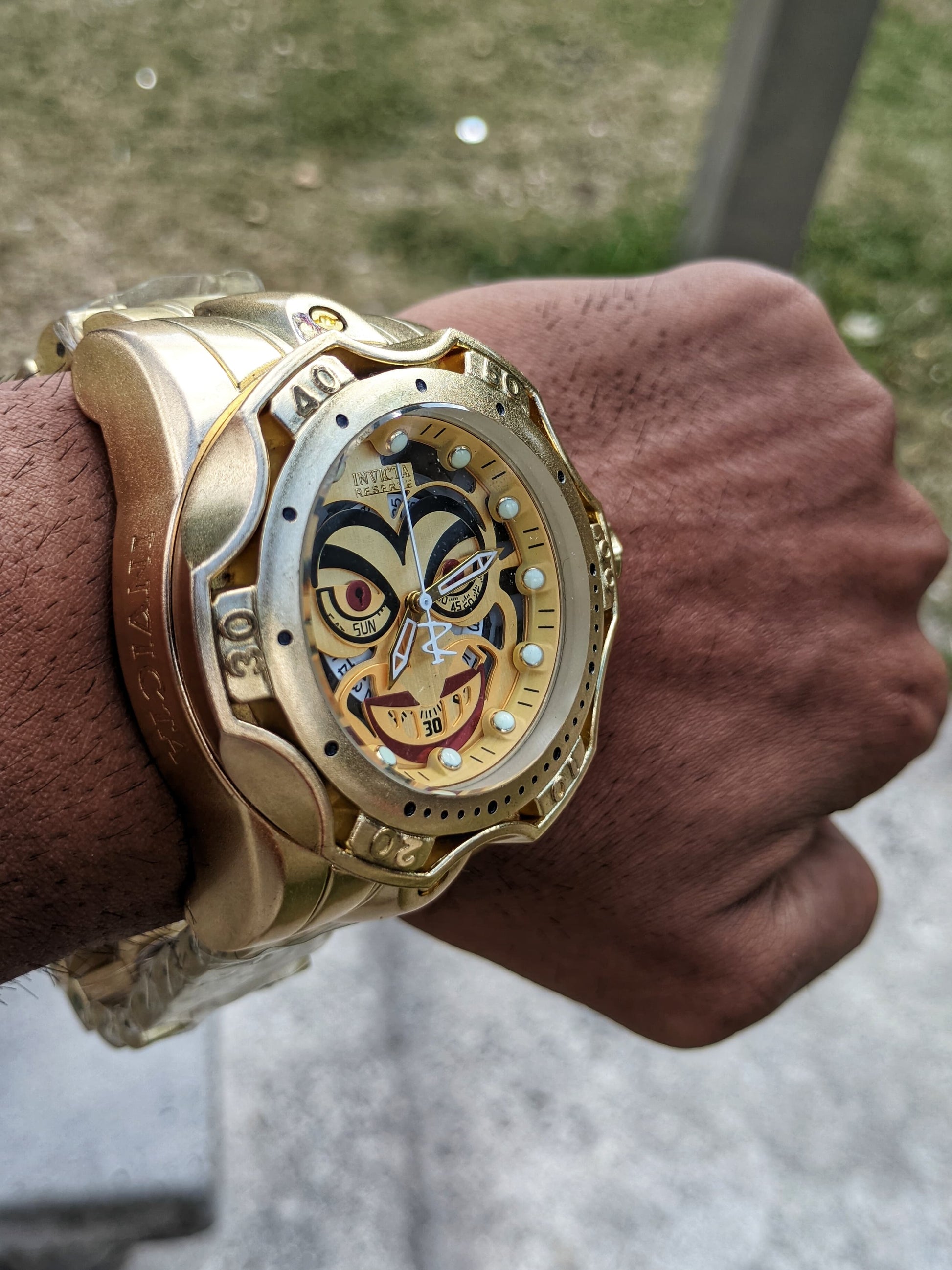 Ao usar o Invicta Coringa, você transmite autoridade, irreverência e personalidade única. Uma réplica de qualidade, feita para impressionar sem precisar explicar.
