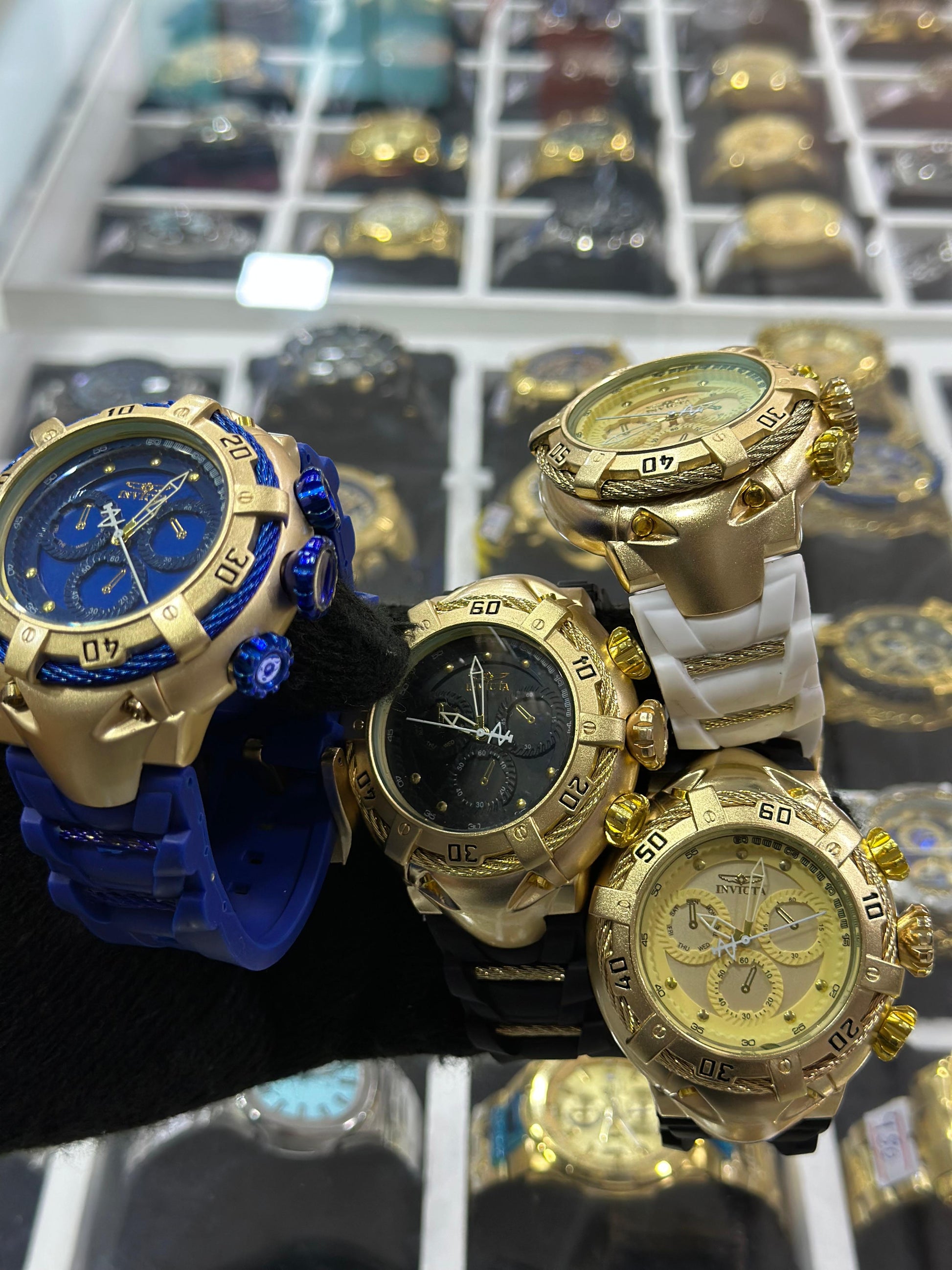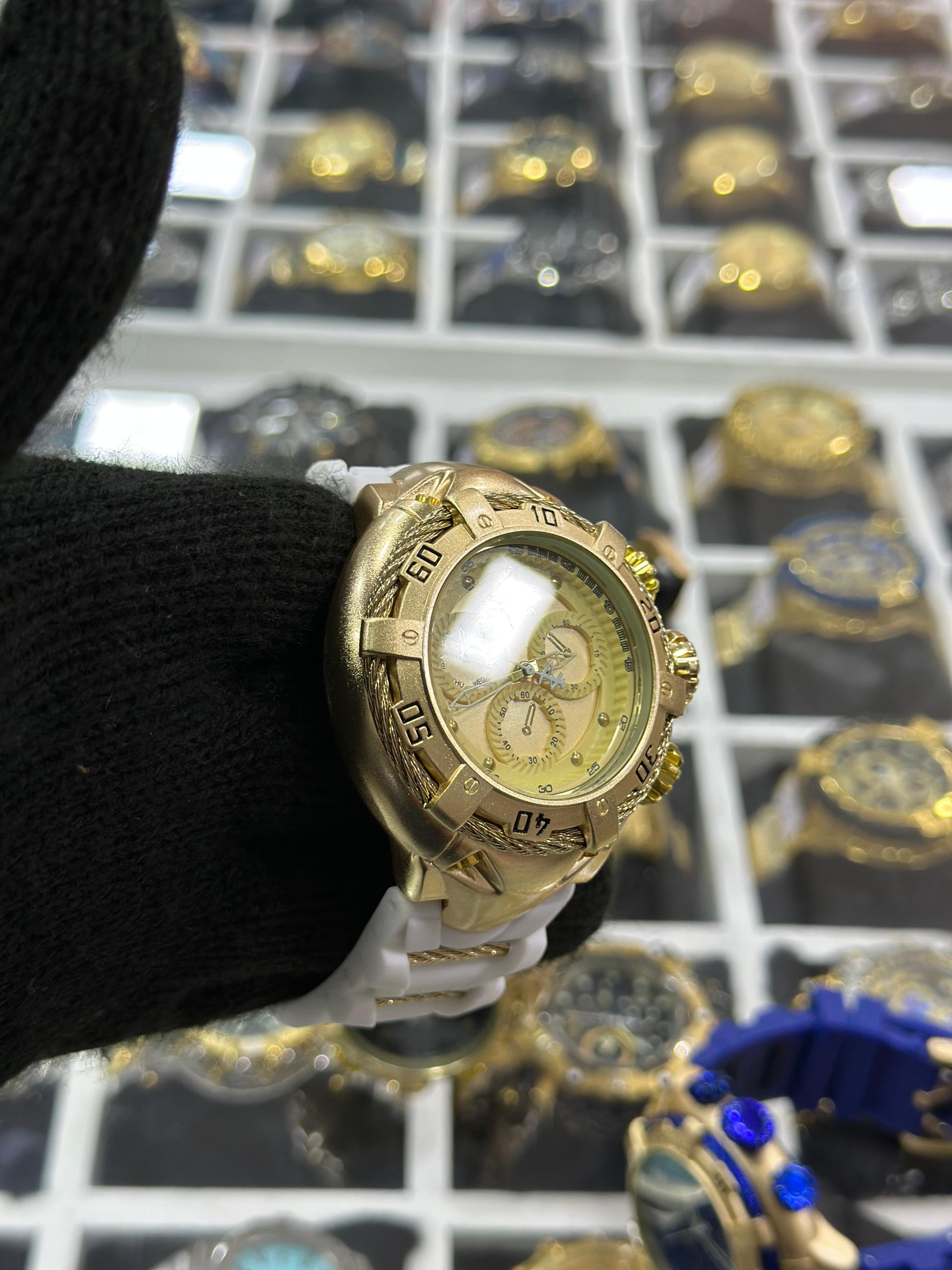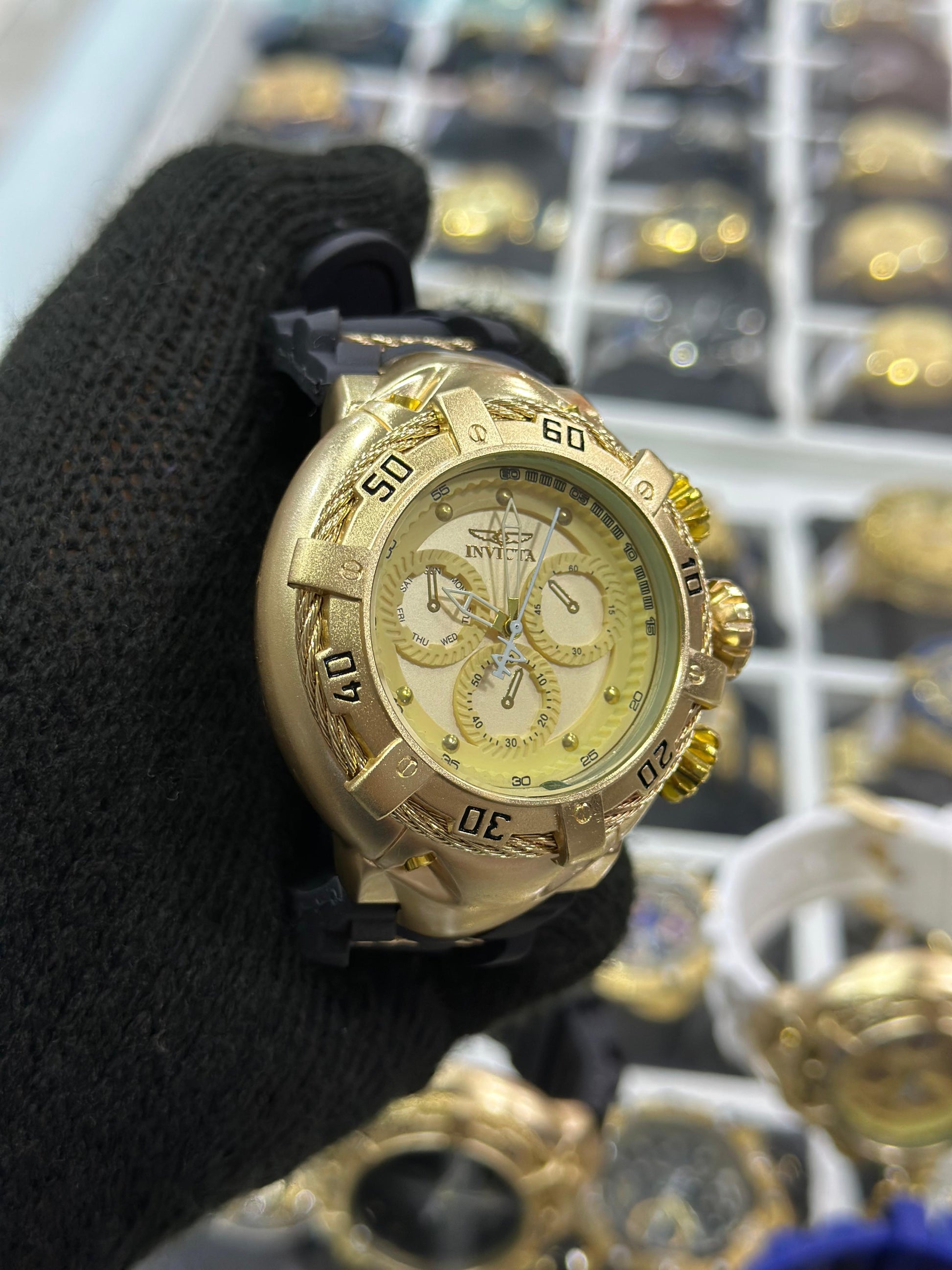 O Invicta ThunderBolt com pulseira de borracha é o tipo de acessório que não pede atenção — ele exige. Com um design robusto, luxuoso e diferenciado, esse modelo mistura ouro fosco e uma construção imponente que transmite força e liderança.