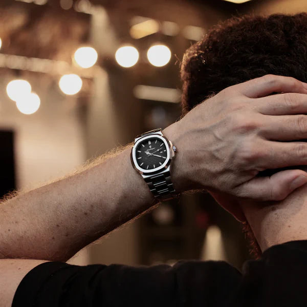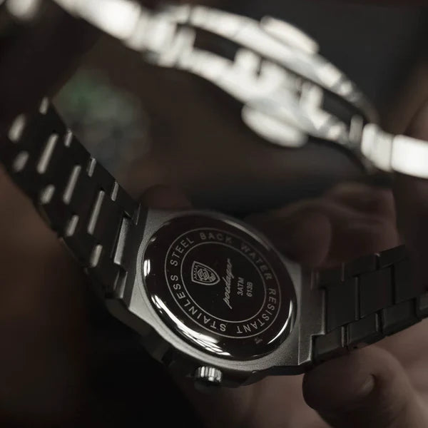 Equipado com uma pulseira de aço inoxidável e fecho de fivela oculto, este relógio não oferece apenas durabilidade excepcional, mas também proporciona um ajuste confortável, garantindo que você esteja impecável em qualquer ocasião.