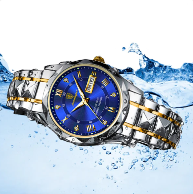 Seu mostrador azul vibrante com detalhes em dourado traz um brilho hipnotizante que transforma qualquer look em uma afirmação de estilo.