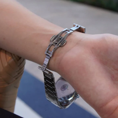 O fecho de fivela oculto da pulseira de aço assegura um ajuste seguro ao pulso, proporcionando não apenas segurança, mas também conforto. Com um comprimento de 23cm, este relógio se adapta a diferentes tamanhos de pulso, podendo ser facilmente ajustado.